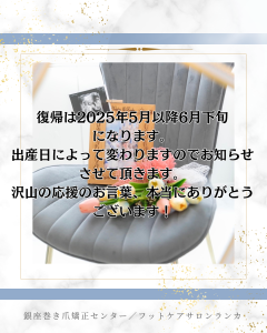 ※爪の処置を希望される方はペディキュア等はご自身で除去して来てください。