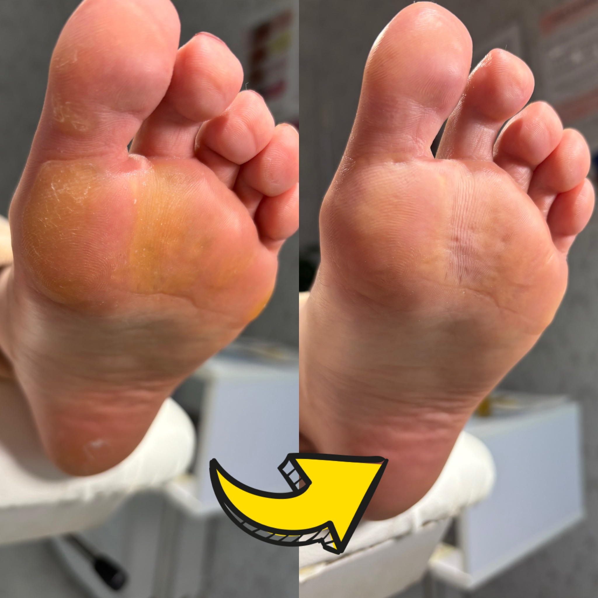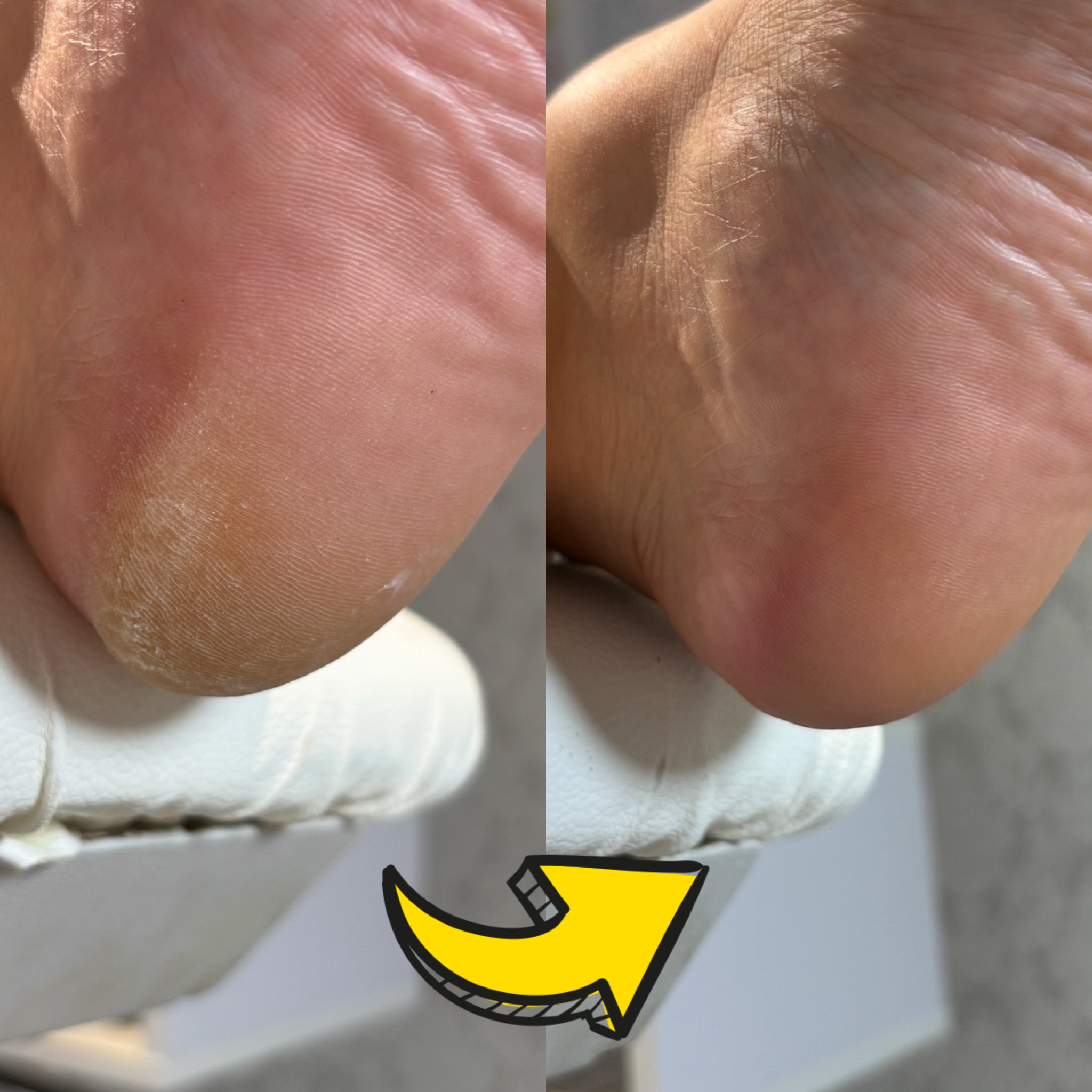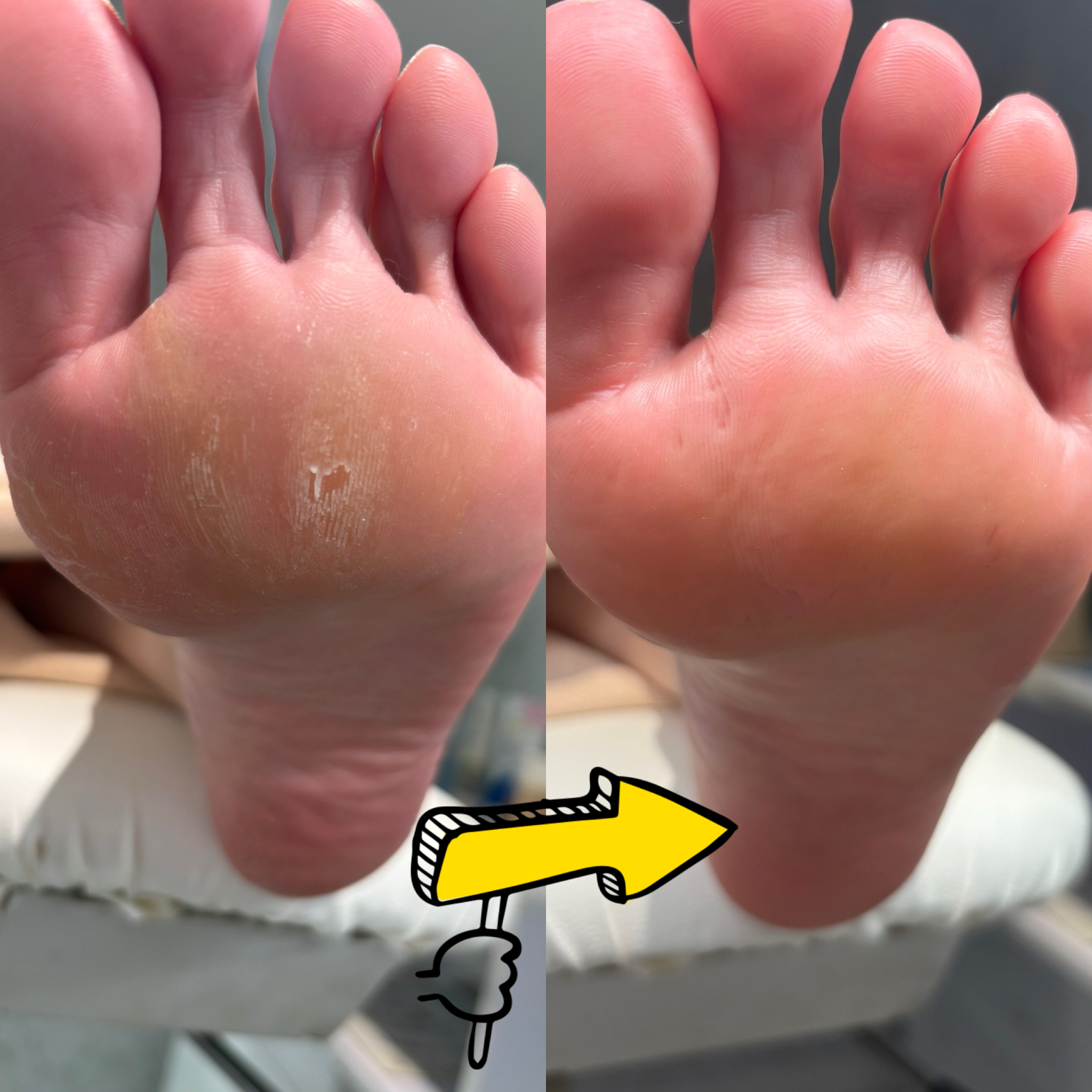 裏の角質、タコ・ウオノメ・ガサガサ踵のお手入れを専用の機械を使いケアしていきます。
